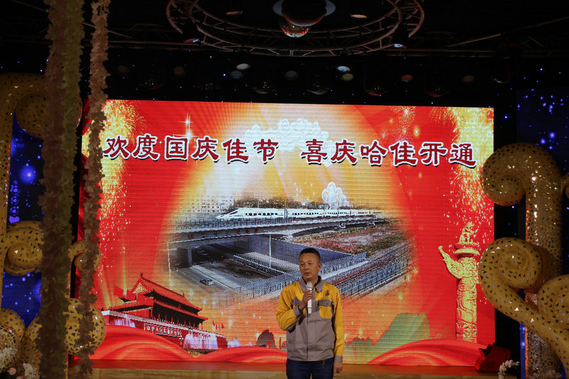 余音繞梁,笙簫賀唱。項(xiàng)目部舉行了“歡度國慶佳節(jié) 喜慶哈佳開通”聯(lián)歡盛典,在精彩的開場引領(lǐng)下,哈佳項(xiàng)目部領(lǐng)導(dǎo)班子集體合唱《沒有共產(chǎn)黨就沒有新中國》、《打靶歸來》,唱響贊頌祖國的嘹亮紅歌,現(xiàn)場氛圍由此引爆,一曲曲可歌可泣的時(shí)代壯歌,一段段詼諧幽默卻又凸顯時(shí)代的舞蹈,帶大家領(lǐng)略了國家的雄偉壯闊,領(lǐng)大家見證了那激昂的青春歲月;一段段振奮的三句半,一首首慷慨的詩朗誦,將大家?guī)Щ亓怂哪旯呀ㄔO(shè)的艱辛之路,帶大家再次見證了相互依伴的歲月,展示了那股永不服輸、勇攀高峰的精神境界,引起了大家的共鳴,讓我們看到了這群奮斗在基建第一線的工程人最幸福、最可愛的一面。這群辛苦的建設(shè)者們,難得有空閑時(shí)間坐下來一起暢談未來,一起唱響心中的豪邁,今夜注定是最開心的一夜!