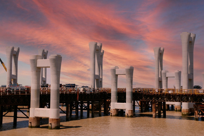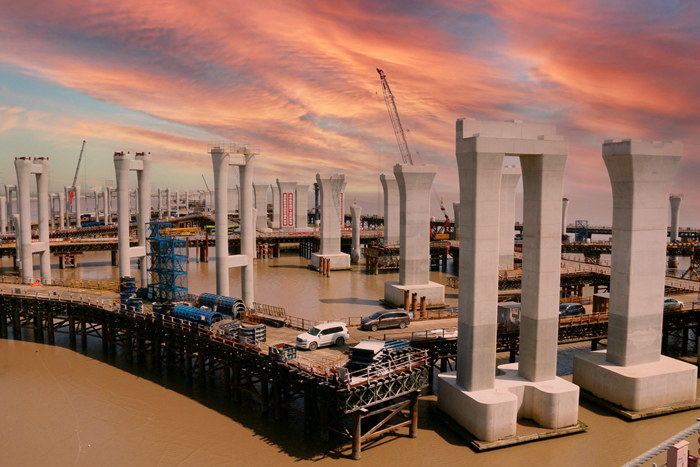預計12月上旬完成濱?;ネㄗ詈?座匝道橋墩施工任務,將為架梁施工攻下最后一個“堡壘”。
