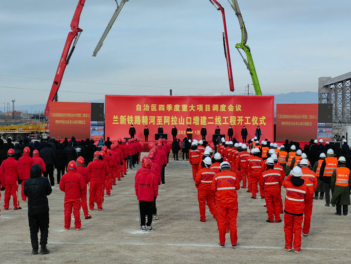 11月30日,由中鐵二十一局參建的蘭新鐵路精河至阿拉山口段增建二線工程在阿拉山口火車站舉行開工儀式。