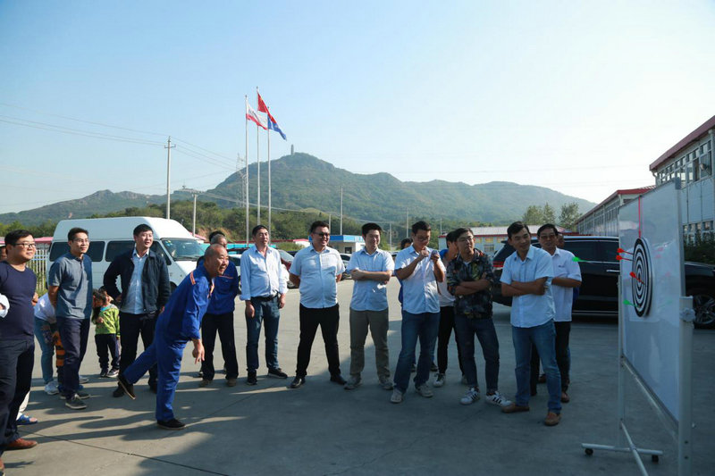 10月2日,“投擲飛鏢”、“雙人綁腿跑”、“拔河比賽”等比賽項(xiàng)目應(yīng)接不暇,一連串的文體活動(dòng)把節(jié)日氣氛推向新高潮。在投擲出7環(huán)、8環(huán)、8環(huán)、7環(huán)、9環(huán)、共39環(huán)后,張毅已提前鎖定冠軍;雙人綁腿跑比賽由工程部?jī)擅』镒臃洞嫘?、姚浩宇?.31s的成績(jī)遙遙領(lǐng)先各種“親子隊(duì)”、“夫妻檔”、“兄弟組”;殺聲震天的拔河比賽由“鄭昌軍、宋海濤”領(lǐng)銜的“壯漢隊(duì)”力壓各隊(duì)豪杰勇奪桂冠,拔河比賽結(jié)束后鄭昌軍興奮的說(shuō)道“整個(gè)胳膊都在顫抖,但是仍然覺(jué)得很開(kāi)心、很興奮、很過(guò)癮。”