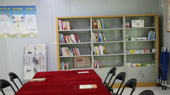 據(jù)了解,項(xiàng)目黨支部和工會(huì)非常重視施工隊(duì)伍的精神文化生活,由過去只注重內(nèi)部職工,到現(xiàn)在向勞務(wù)隊(duì)伍延伸、向班組滲透,把長(zhǎng)期穩(wěn)定的務(wù)工人員納入工會(huì)工作。工區(qū)建立了“職工之家”,購(gòu)置各類圖書雜志400多冊(cè),以及各種棋類、筆墨紙硯等,供務(wù)工人員娛樂、學(xué)習(xí);建立了“職工活動(dòng)室”,配置有各種健身器材,讓大家在工作之余可以鍛煉身體、休閑娛樂。