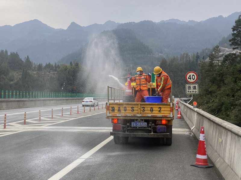 在各交安項目鏖戰(zhàn)大干的同時,金路公司各養(yǎng)護項目也絲毫沒有停步。為保證項目施工如期進行,渝西養(yǎng)護中心的工人們住進了銅梁北收費站,全力沖刺渝遂高速護欄改造工程;渝東養(yǎng)護中心則趕在冰雪雨霧惡劣天氣到來前組織各工區(qū)對抗冰除雪工作進行經(jīng)驗交流,全面完善優(yōu)化應(yīng)急響應(yīng)、物資儲備、融劑使用、督導(dǎo)檢查等清雪機制,為冬季抗冰除雪保暢工作做好充分準(zhǔn)備。