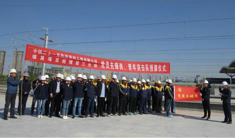 “黨員先鋒崗”、“青年突擊隊(duì)”代表鄭重表態(tài),表示謹(jǐn)記先鋒隊(duì)和突擊隊(duì)的責(zé)任,宣揚(yáng)團(tuán)結(jié)互助、攻堅(jiān)克難的模范精神,以昂揚(yáng)的斗志、飽滿的熱情,安全優(yōu)質(zhì)的完成任務(wù),為實(shí)現(xiàn)銀吳鐵路建成通車目標(biāo)而努力拼搏。
