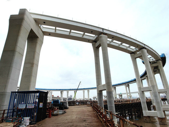 杭甬項目濱海高架橋于2022年初完工,濱?;ネǔ蔀樵擁椖坎康闹鲬?zhàn)場。濱海互通設(shè)計4座拼寬橋、8座匝道橋,三次上跨、4次交匯金塘大橋,采用變形苜蓿葉形(單環(huán)式)互通型式,全長9705米,樁基1027根、承臺169座、墩柱636座、鋼混疊合梁65聯(lián)493片。2022年公司給杭甬項目下達產(chǎn)值計劃35133萬元,全年要完成樁基、承臺和90%的墩柱任務,生產(chǎn)和架設(shè)鋼箱梁、混疊合梁有一定數(shù)量。海上作業(yè),受潮汐、極端天氣影響,安全風險高,潛在的不確定因素多。為保證樁基、承臺、墩身、架梁的順利進行,他們對每道工序都制定了詳盡的施工方案,分步驟組織實施,并安排班子成員、部門負責人現(xiàn)場獨到施工,劃分區(qū)域,各管一片,與本人的職務升降掛鉤,能者上、弱者下,激發(fā)每個管理人員主動作為的積極性和正能量。今年夏秋兩次超強臺風來襲,從抗臺準備到臺風過境復工復產(chǎn),延誤工期半個月之久。同時,在新冠疫情給杭甬項目施工生產(chǎn)帶來很大沖擊。受多重自然災害的干擾,杭甬項目部經(jīng)受著嚴峻考驗,他們啟動應急預案,凝心聚力,將災害造成的損失減至最小。其次,在資金緊張的情況下,項目部壓縮非生產(chǎn)性開支,將有限的資金用在刀刃上,全力保生產(chǎn),促進了施工生產(chǎn)的順利進行。