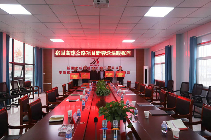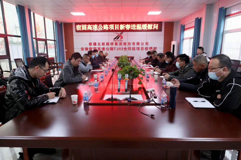 宿州訊(孫夢凱)1月13日,安徽宿固高速公司副總經(jīng)理兼總經(jīng)濟(jì)師趙川一行到安徽宿固高速公路TJ02合同段項(xiàng)目經(jīng)理部開展春節(jié)送溫暖慰問活動,為項(xiàng)目一線職工送去公司的關(guān)懷問候和新春祝福。宿固項(xiàng)目總承包部總工程師黃輝、相關(guān)部門人員以及總監(jiān)辦、監(jiān)理第一、第二駐地辦、中心實(shí)驗(yàn)室、工地試驗(yàn)室、土建2-6標(biāo)負(fù)責(zé)人參加會議。