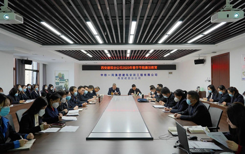(西安訊)“嚴明紀律要求、開展作風(fēng)檢查、加強家風(fēng)建設(shè)……”為加強春節(jié)期間紀律作風(fēng)建設(shè),營造風(fēng)清氣正的節(jié)日氛圍,1月8日早,中鐵一局建安公司西安建筑分公司黨總支組織分公司機關(guān)全體職工在會議室開展了春節(jié)前專題廉潔教育,會議由分公司黨總支書記劉改民主持,分公司經(jīng)理白濤及其他班子成員、機關(guān)管理人員共計40余人參加了會議。
