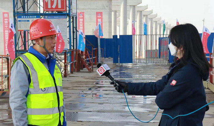 圖為項目負責人黎衛(wèi)國接受湖北孝感電視臺記者采訪年味尚濃,但項目部已經(jīng)鉚足馬力,搶抓時間,先行復工,為沖刺首季“開門穩(wěn)”、“開門紅”打響了開春第一槍。