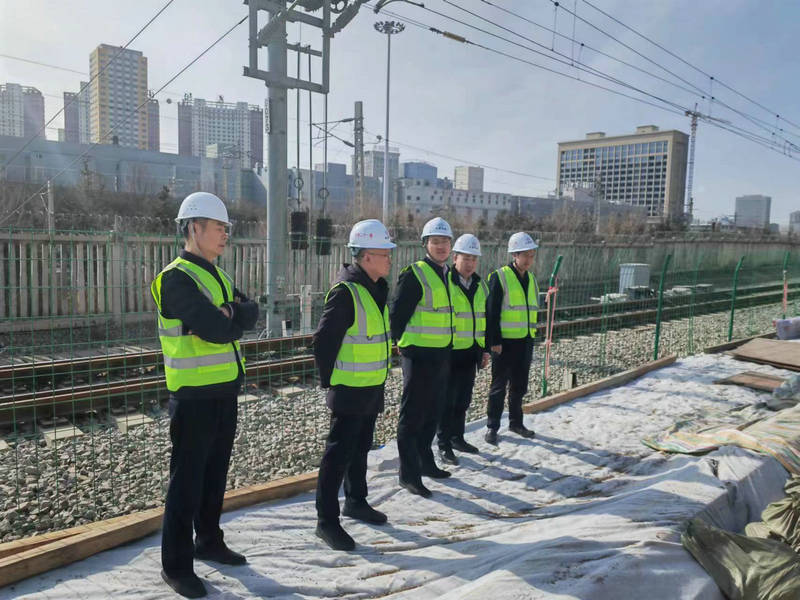 中鐵二十一局四公司黨委書記、執(zhí)行董事劉忠厚一行到蘭新客專達速提質項目調(diào)研(李建華 攝)