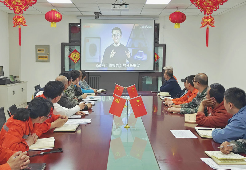 堅持利用周例會人員集中時間組織開展學(xué)習(xí),加深全員對全國“兩會”精神的理解。3月12日晚,項目組織全體黨員干部職工集中學(xué)習(xí)《全國人民代表大會常務(wù)委員會工作報告(摘要)》《習(xí)近平在參加江蘇代表團(tuán)審議時強調(diào)牢牢把握高質(zhì)量發(fā)展這個首要任務(wù)》,觀看人民日報視頻《<2022年政府工作報告>深度解讀》,發(fā)放政府工作報告分析框架圖輔助學(xué)習(xí)資料。