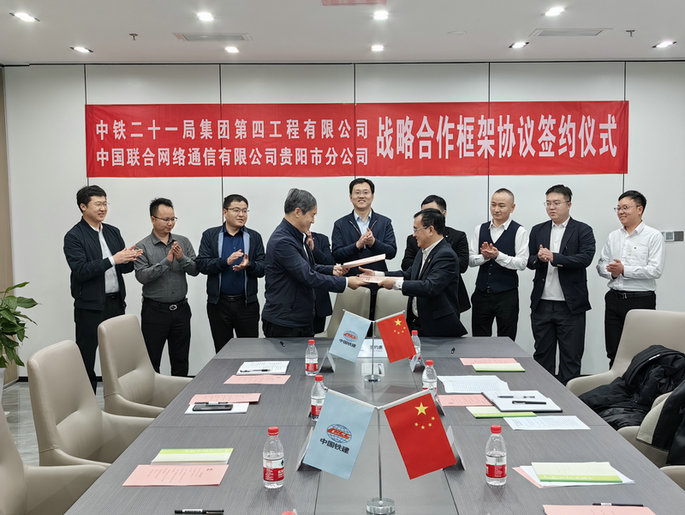 中鐵二十一局四公司總部經(jīng)營計劃部及中國聯(lián)合貴陽市分公司相關人員參加此次簽約儀式。