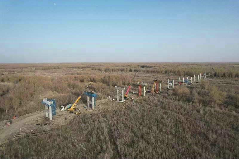 本次完成樁基澆筑的葉爾羌河特大橋,全長2888m,200根樁基,跨越近3km胡楊林自然保護區(qū),火險等級高,環(huán)保形勢嚴峻,是圖昆公路項目主要控制工程之一。為確保項目施工順利進行,項目部倒排工期、掛圖作戰(zhàn)、加速推進,全體人員放棄春節(jié)休息,卯足干勁搶進度、抓安全,保質(zhì)量。通過優(yōu)化施工方案,不斷增強資源配置,劃分節(jié)點安全質(zhì)量、施工進度任務(wù),推進項目管理人員和施工班組進度考核制度落實。施工中,堅持領(lǐng)導(dǎo)帶班和班前教育,強化過程工序質(zhì)量和安全措施控制,加強過程協(xié)調(diào),及時化解施工存在的問題,確保各工序高效連接,不斷加快項目施工進度。隨著樁基施工的穩(wěn)步推進,橋墩、預(yù)制箱梁施工也緊隨其后,目前已完成葉爾羌河特大橋下部結(jié)構(gòu)106節(jié)墩柱,預(yù)制30m箱梁94榀,中橋已完成空心板架設(shè)。