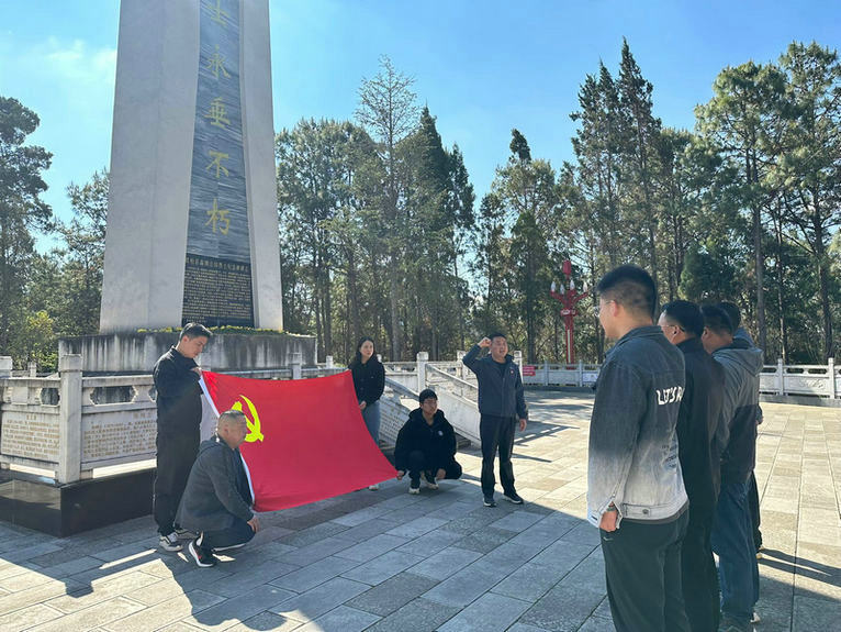 莊嚴(yán)的儀式在一片肅穆中拉開帷幕,項(xiàng)目代表向紀(jì)念碑敬獻(xiàn)了鮮花,全體人員默哀三分鐘并深深彎腰鞠躬,表達(dá)對(duì)烈士們的崇敬與尊重。項(xiàng)目黨員代表介紹了紀(jì)念碑上的浮雕內(nèi)容,感受先烈們的宏偉業(yè)績和英雄事跡。最后,全體黨員面向黨旗莊嚴(yán)宣誓、重溫入黨誓詞,感悟革命前輩深厚的為民情懷。