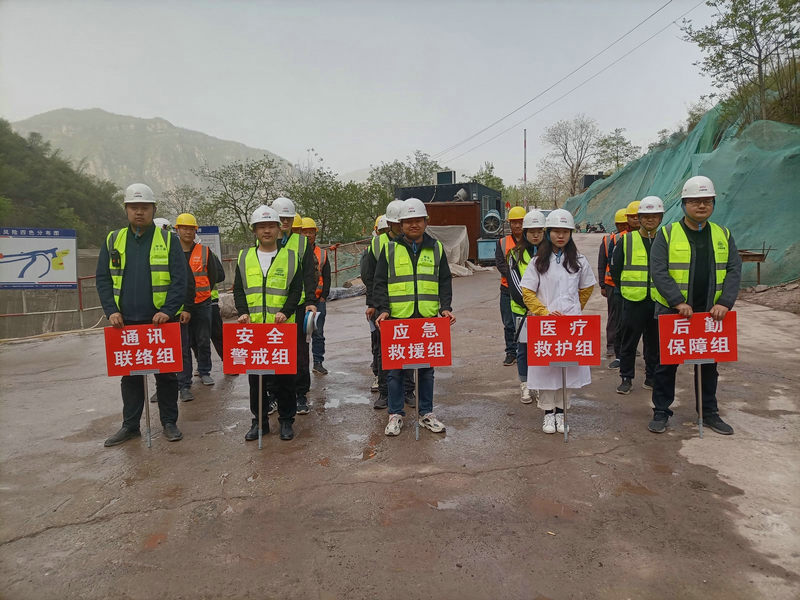 此次演練項目部成立了應急演練領導小組、應急指揮機構(gòu)和應急演練專業(yè)小組,演練設通訊聯(lián)絡組、安全警戒組、應急救援組、醫(yī)療救護組、后勤保障組五個工作小組,分別模擬“現(xiàn)場作業(yè)人員隨意丟棄未徹底熄滅的煙頭導致周邊山體著火、汛期強降雨雨水漫過泄洪溝流入隧洞洞口導致雨水倒灌隧洞風險”情景,進行了實地實戰(zhàn)應急演練。在應急演練過程中,應急小組反應敏捷、行動迅速、協(xié)調(diào)一致,迅速完成了應急響應、安全疏散、應急搶險救援等工作。