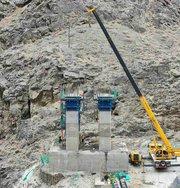 奎屯河老虎口大橋項(xiàng)目墩柱澆筑