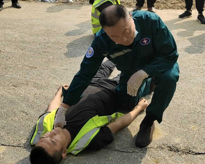 此次演練成立應(yīng)急救援、通訊聯(lián)絡(luò)、后勤保障、安全警戒、醫(yī)療救護(hù)五個(gè)小組,模擬因連續(xù)暴雨南涑河水位上漲導(dǎo)致項(xiàng)目橡膠壩圍堰即將決口,項(xiàng)目部在接到險(xiǎn)情報(bào)告后,立即啟動(dòng)應(yīng)急預(yù)案,各小組奔赴決堤現(xiàn)場展開救援處置工作。演練結(jié)束后,臨沂城區(qū)醫(yī)院的專業(yè)醫(yī)生講解傳授了人員溺水和骨折的現(xiàn)場急救知識(shí)。