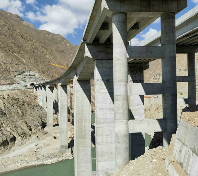 目前卡如雅魯藏布江大橋正在拆除架橋機(jī),全力推進(jìn)橫隔板、濕接縫、護(hù)欄等后續(xù)施工。