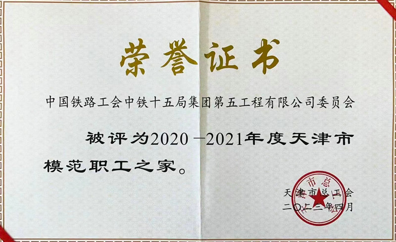 日前,天津市總工會(huì)公布2020—2021年度天津市模范職工之家評(píng)選結(jié)果,中國(guó)鐵路工會(huì)中鐵十五局集團(tuán)第五工程有限公司委員會(huì)榜上有名,這主要得益于他們從五個(gè)維度不斷推進(jìn)職工之家建設(shè)。