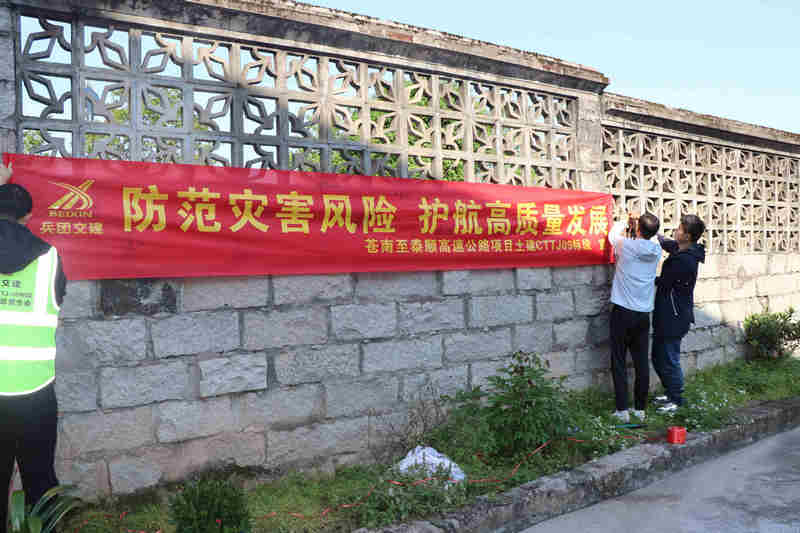 “我們地處浙江南部,受季風(fēng)影響強(qiáng)烈,洪澇、臺(tái)風(fēng)、雷電、強(qiáng)降雨、洪澇、滑坡、泥石流等災(zāi)害均可能發(fā)生,且發(fā)生的頻率比較高……我們應(yīng)當(dāng)知曉身邊自然災(zāi)害并掌握避險(xiǎn)技能,保證自身和身邊人的安全。”宣傳周首日,項(xiàng)目安環(huán)部緊緊圍繞宣傳周主題召開(kāi)動(dòng)員部署會(huì),組織全體職工進(jìn)行宣誓和簽名,并在項(xiàng)目駐地周邊懸掛宣傳橫幅,張貼宣傳海報(bào)、發(fā)放宣傳單等,將防災(zāi)減災(zāi)知識(shí)傳達(dá)給每個(gè)從業(yè)人員,切實(shí)保障活動(dòng)注重效果、不走過(guò)場(chǎng),確保工作取得實(shí)效。