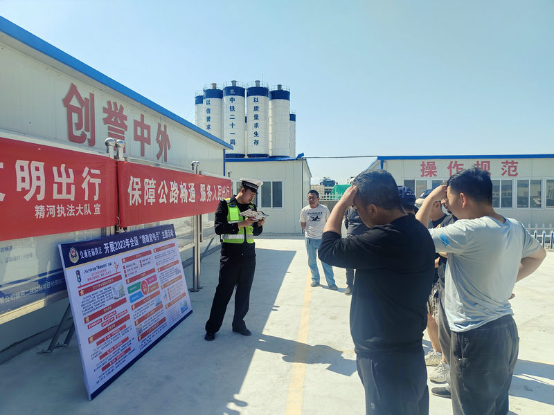 5月10日,博州精河縣交通運(yùn)輸執(zhí)法大隊(duì)、交警大隊(duì)在中鐵二十一局精阿增建二線S2標(biāo)項(xiàng)目開展“路政宣傳月”大走訪活動(dòng)。