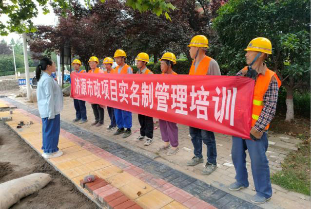 提升源頭管理 保障薪資無憂,5月28日,北新路橋集團西安分公司濟源市政工程項目在黃河大道施工現(xiàn)場對農(nóng)民工開展勞動權益保護相關知識培訓。