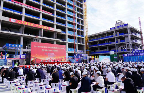 當(dāng)天,榆林市2023年全市建設(shè)工程質(zhì)量安全標(biāo)準(zhǔn)化暨文明工地現(xiàn)場觀摩會在榆林市公安局業(yè)務(wù)技術(shù)用房及大數(shù)據(jù)應(yīng)用中心項目部舉辦,榆林市住建局、應(yīng)急局、生態(tài)環(huán)保局、公安局、榆林高新技術(shù)產(chǎn)業(yè)開發(fā)區(qū)管理委員會應(yīng)急管理局主要領(lǐng)導(dǎo)、各縣市區(qū)住建局分管負(fù)責(zé)人、質(zhì)量安全監(jiān)督機(jī)構(gòu)負(fù)責(zé)人、中心城區(qū)各在建項目項目負(fù)責(zé)人等500余人組成的觀摩團(tuán)深入?yún)⑦x工地進(jìn)行觀摩交流。