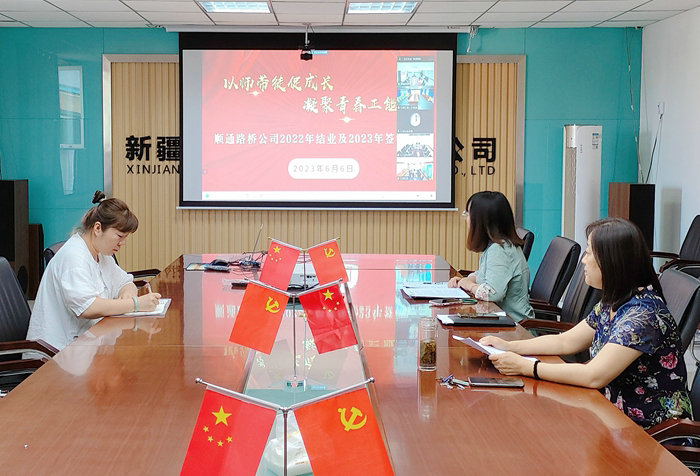 新疆石河子訊(通訊員 劉嘉俊)6月8日,順通路橋公司在總部以視頻會議的方式舉行了公司“導(dǎo)師帶徒”2022年度結(jié)業(yè)及2023年度簽約活動,公司及基層項(xiàng)目管理人員共計(jì)39人參加。