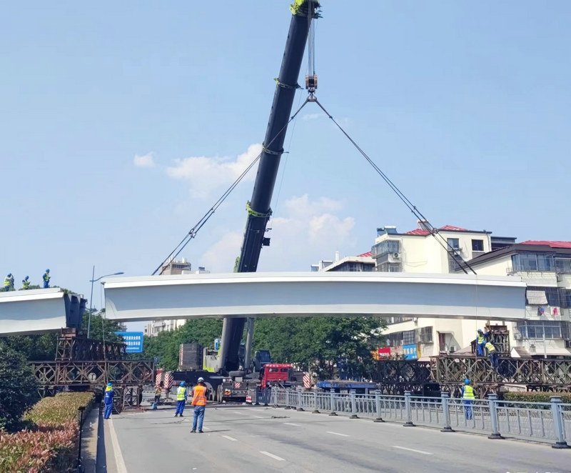 本次封閉施工先后進(jìn)行了封閉道路、安裝臨時(shí)支墩、吊裝鋼箱梁、焊接焊縫、安裝護(hù)欄、臨時(shí)支墩防護(hù)、開通道路等多道施工工序。在項(xiàng)目部所有參建員工的共同努力下,按時(shí)圓滿完成了所有施工任務(wù)。