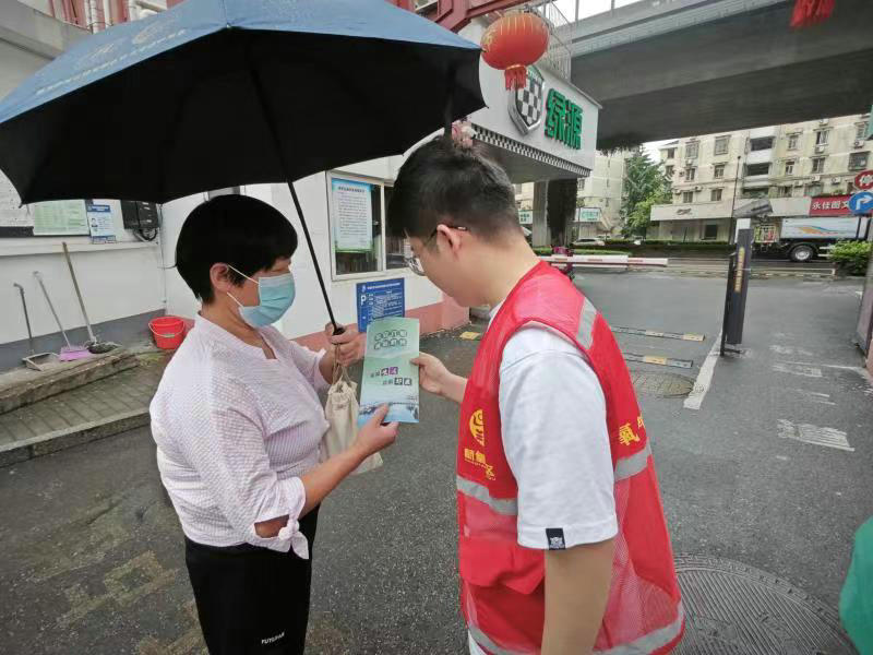 團員青年向居民發(fā)放宣傳單