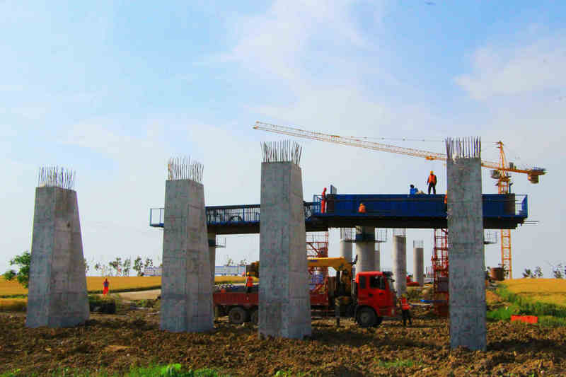 圖為 北新路橋集團四川分公司安徽省宿固高速公路TJ05合同段項目經(jīng)理部沱河大橋施工現(xiàn)場,目前該橋梁已進入上部結(jié)構(gòu)施工階段,下一步將進行主墩0號塊及掛籃施工,該項目將全力以赴推進施工生產(chǎn)進度,以實際行動沖刺二季度。