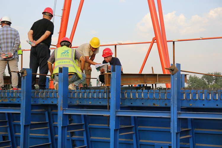 為確保首片預制箱梁順利澆筑成功,項目部從原材料考察、模板加工選用及澆筑養(yǎng)護控制等方面入手,深入研究、反復比選,確定了預制箱梁施工方案。施工前,項目部堅持“方案先行、過程管控”的原則,積極召開專題會,對施工班組進行了分工序技術交底及安全技術交底,對原材料檢驗、鋼筋綁扎吊裝、模板拼裝拆除、混凝土振搗等作了詳細講解和分工安排。施工過程中,作業(yè)人員規(guī)范操作、密切配合,技術人員動態(tài)跟蹤、實時控制,監(jiān)理人員全程旁站、精心指導,確保了澆筑順利完成。