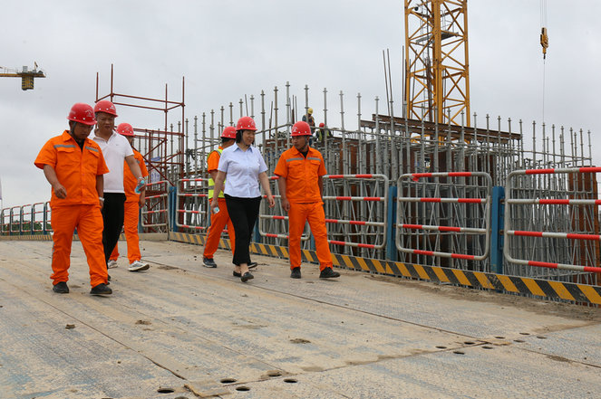 隨后,楊偉娜深入施工一線詳細(xì)了解項(xiàng)目施工進(jìn)度,認(rèn)真聽(tīng)取項(xiàng)目負(fù)責(zé)人關(guān)于施工安全生產(chǎn)管理相關(guān)工作情況的匯報(bào),并強(qiáng)調(diào)項(xiàng)目在搶抓工期、大干快上的同時(shí),要高度重視職工健康情況,持續(xù)加強(qiáng)施工現(xiàn)場(chǎng)安全生產(chǎn)管理,加強(qiáng)防暑宣傳教育,切實(shí)將高溫施工各項(xiàng)防暑措施落實(shí)到位,全力保障項(xiàng)目施工安全。