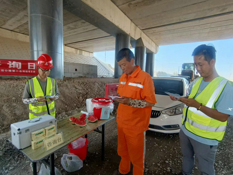 下圖為:北新順通路橋公司G312項(xiàng)目部開(kāi)展安全宣傳咨詢?nèi)?/p>