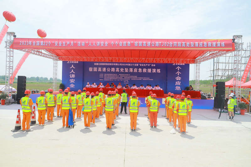 宿州訊(通訊員 孫夢凱)六月的宿州,風(fēng)吹麥浪,金光淹漾。6月21日上午,安徽宿固高速公司在宿固高速項目TJ02合同段新汴河特大橋右幅18#墩施工現(xiàn)場組織開展“人人講安全,個個會應(yīng)急”為主題的高空墜落事故應(yīng)急救援演練,以練促效,進(jìn)一步提升項目應(yīng)急處置能力,強(qiáng)化全員安全防范意識。