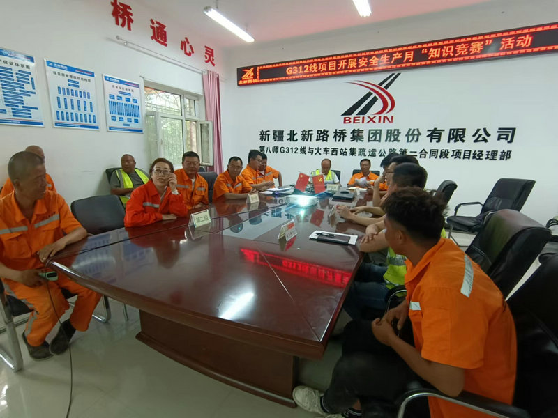 石河子訊(尹紅梅)為進(jìn)一步增強(qiáng)職工群眾的安全意識(shí),提高安全生產(chǎn)技能,增強(qiáng)預(yù)防和應(yīng)急處理能力,營(yíng)造“人人講安全、個(gè)個(gè)會(huì)應(yīng)急”的濃厚氛圍,按照“安全生產(chǎn)月”活動(dòng)要求,6月20日下午,新疆北新順通路橋公司G312項(xiàng)目部開展安全生產(chǎn)月知識(shí)競(jìng)賽活動(dòng),