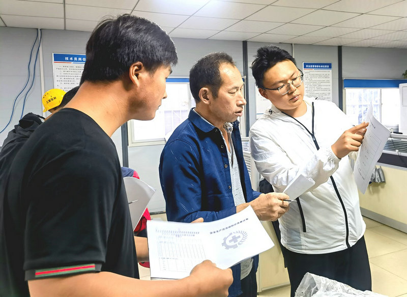“五加二”“白加黑”是參建員工們的工作常態(tài),一切圍著現(xiàn)場轉(zhuǎn)。他們每天像戰(zhàn)士沖鋒打仗一樣,應(yīng)對各方檢查、督導(dǎo)現(xiàn)場施工、調(diào)配人力資源、解決突發(fā)問題,應(yīng)接不暇,喊破嗓子、跑斷了腿,一刻也不敢停歇。深夜的項目部,會議室總亮著燈光。忙碌一天的公司安全總監(jiān)李偉,與項目經(jīng)理彭晶龍、總工程師陶興革,每天都要雷打不動的聚在一起,核對當(dāng)天完成的工程量,梳理倒排工期計劃,統(tǒng)籌人財物資源調(diào)配等等,你一言,我一語,研究處理各種棘手的問題事不過夜。他們的工作時間從清晨醒來就進入狀態(tài),直到晚上躺在床上進入夢鄉(xiāng)才宣告一天的結(jié)束。白天像停不下的陀螺,緊繃神經(jīng)高速運轉(zhuǎn),收工后每天都要熬到深夜。經(jīng)常是第二天清晨五點,揉一揉布滿血絲的雙眼,又出現(xiàn)在施工現(xiàn)場,安排部署新的一天工作。