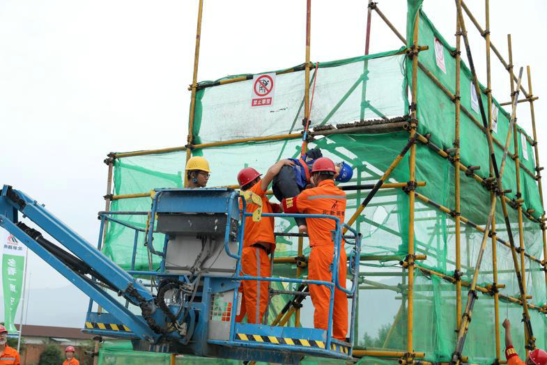 應急演練圍繞高處墜落事故和火災事故兩個方面進行。該項目模擬電焊作業(yè)人員從高處墜落,以及因電焊作業(yè)時焊渣掉落至作業(yè)平臺下方材料堆放區(qū)引發(fā)火災的場景。在事故發(fā)生后的第一時間,項目部即啟動相應應急預案,各救援小組分工明確,迅速行動,按照預案流程在極短時間內(nèi)完成了各項預警、疏散、滅火、救護及處置總結(jié)各項內(nèi)容。演練現(xiàn)場指揮得當、協(xié)調(diào)有序,展現(xiàn)了事故上報、預案啟動、現(xiàn)場搶險、聯(lián)動救援、安全警戒、事故調(diào)查等應急救援全流程,進一步提升了各部門快速聯(lián)動、應急救援處置的能力?,F(xiàn)場還結(jié)合項目建筑工程特點和施工實際,分別進行了醫(yī)療救護宣講和消防知識講解,具有較強的針對性和實用性,達到了檢驗預案、鍛煉隊伍的目的。