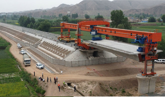 6月27日,隨著架梁機將一孔長32米、重800余噸的高鐵箱梁穩(wěn)穩(wěn)落在鄂博溝中橋上,標志著由中鐵二十一局四公司承建的蘭張三四線鐵路已進入橋梁上部結(jié)構(gòu)施工,整體施工節(jié)點目標取得重大突破。