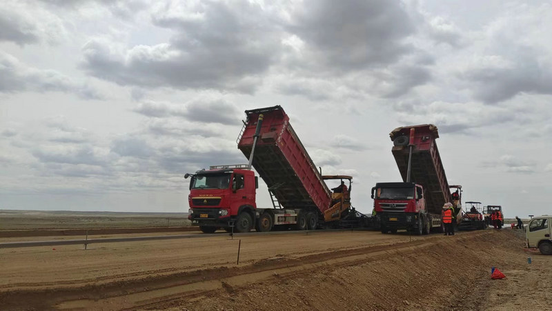 福海訊(通訊員 馬冬玲)6月26日,兵團(tuán)交建國道576項(xiàng)目施工現(xiàn)場,攤鋪機(jī)、壓路機(jī)等各類施工機(jī)械正忙碌而有序地作業(yè)中,水穩(wěn)層施工流水作業(yè)進(jìn)行得有條不紊。下午8點(diǎn),經(jīng)過7個(gè)小時(shí)緊張有序的施工作業(yè),順利完成水穩(wěn)底基層試驗(yàn)段鋪筑,為國道576項(xiàng)目路面工程施工拉開了序幕。