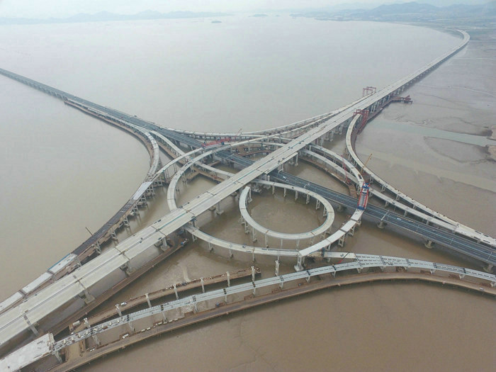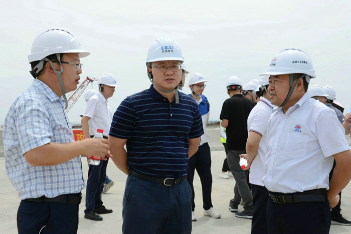 上午10點(diǎn)40分,由寧波市交通工程管理中心黨委書記、主任王迎春帶領(lǐng)的觀摩團(tuán)來到濱?;ネê诵膮^(qū)域,首先聽取了業(yè)主現(xiàn)場負(fù)責(zé)人陳宜保就杭甬項(xiàng)目濱海互通工程概況、規(guī)模、開竣工時(shí)間、工程進(jìn)度等情況。公司副總經(jīng)理兼杭甬項(xiàng)目黨支部書記、項(xiàng)目負(fù)責(zé)人黃偉介紹了濱?;ネ?duì)伍建設(shè)、物資設(shè)備管理、攻克施工難題、安全質(zhì)量、架梁推進(jìn)、收尾現(xiàn)場管理等情況,并回答了寧波市交通局黨組副書記顧偉軍,浙江華展工程研究設(shè)計(jì)院有限公司黨委書記、總經(jīng)理何國平等領(lǐng)導(dǎo)的提問。市軌道交通集團(tuán)有限公司副總工程師葉俊能說:“濱?;ネㄌ鸷沉?,這個(gè)亞洲最大的海上互通,施工單位能建成現(xiàn)在雄偉壯觀的模樣不容易,沒有科學(xué)的管理和精湛的技術(shù)是不行的。”寧波市研究生院副院長周嫻華動(dòng)情地翹起大拇指說:“中鐵十五局這支隊(duì)伍是好樣的!”烈日下,許多人在濱?;ネㄖ骶€橋兩側(cè)依欄目不轉(zhuǎn)睛地觀看縱橫交錯(cuò)的匝道橋,俯視凌空飛架金塘大橋的3座匝道橋,觀看高溫下堅(jiān)守匝道橋鋪設(shè)鋼筋網(wǎng)、澆筑混凝土的員工。一些員工被太陽曬得黢黑的臉龐和用衣袖擦汗水的舉動(dòng)深深地感動(dòng)著觀摩人員。寧波市人大常委會(huì)城建環(huán)資工委副主任、二級(jí)巡視員梁成初叮囑黃偉:“工地干活太辛苦了,目前正值高溫天氣,要做好防暑降溫工作,員工的生命健康是第一位的。”