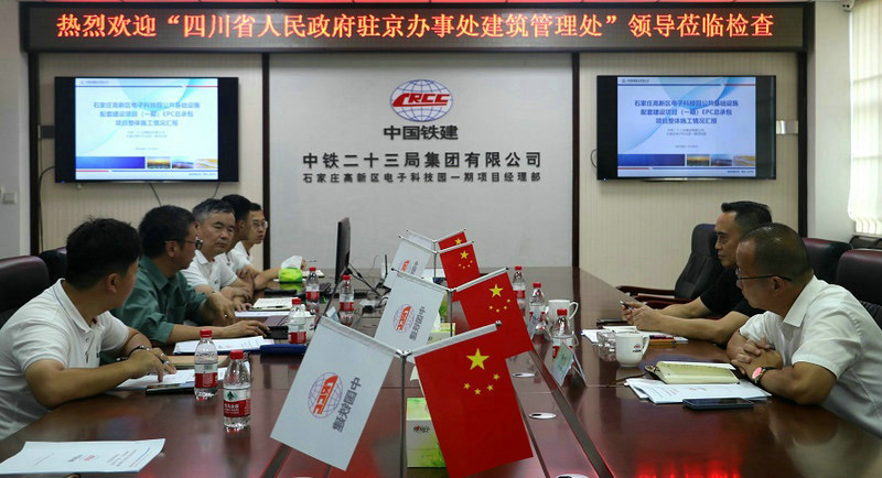7月11日,四川省駐京建設(shè)管理處主任彭信榮一行,深入中鐵二十三局集團(tuán)石家莊電子科技園項(xiàng)目部調(diào)研指導(dǎo)工作。項(xiàng)目經(jīng)理劉繼成、項(xiàng)目書記郭鴻儒、項(xiàng)目安全總監(jiān)郭平海等有關(guān)人員參加活動。