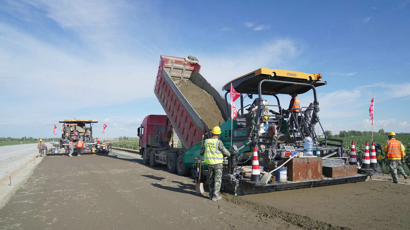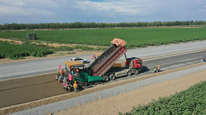 北屯訊(通訊員 臧明超)在兵團交建第十師S318-187團-183團青河農(nóng)場項目施工現(xiàn)場,攤鋪機、平地機、壓路機、運輸車等機械來回穿梭,形成一派熱火朝天的施工景象,緊張有序地進行著水穩(wěn)層攤鋪作業(yè),7月14日,水穩(wěn)基層施工已完成過半,標(biāo)志著該項目正式進入路面施工沖刺階段,也為實現(xiàn)9月通車目標(biāo)奠定了堅實基礎(chǔ)。