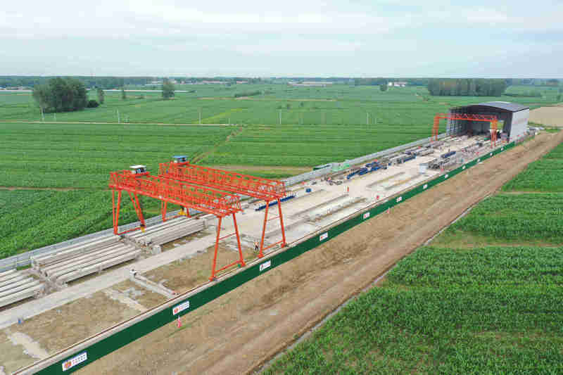 圖為 北新路橋集團(tuán)四川分公司宿固5標(biāo)項(xiàng)目梁場施工現(xiàn)場,目前已成功澆筑46片預(yù)制T梁澆筑 徐德蓉?cái)z