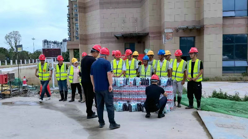 陳興江、錢曉輝一行現(xiàn)場為一線施工人員發(fā)放慰問品