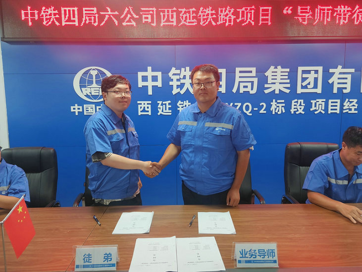 西安訊:7月28日,中鐵四局六公司西延高鐵Ⅱ標(biāo)項(xiàng)目經(jīng)理部圍繞“高標(biāo)準(zhǔn)建設(shè)西延高鐵、高質(zhì)量打造精品工程“建設(shè)目標(biāo),為10對(duì)“入職新生”選派導(dǎo)師,開(kāi)展“1+1”“導(dǎo)師帶徒”簽約儀式,助力他們轉(zhuǎn)角色、提能力,助成長(zhǎng),練本領(lǐng)。