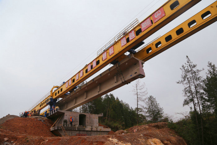 架橋機(jī)進(jìn)行取梁作業(yè)