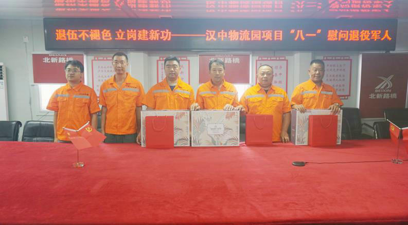 今年是中國(guó)人民解放軍建軍96周年,為扎實(shí)開(kāi)展好“八一”擁軍優(yōu)屬慰問(wèn)工作,鼓勵(lì)廣大退役軍 人發(fā)揮骨干帶頭作用。7月31日,北新路橋集團(tuán)西安分公司漢中褒河物流園項(xiàng)目組織開(kāi)展“八一”退伍軍人職工慰問(wèn)活動(dòng),為項(xiàng)目轉(zhuǎn)業(yè)軍人送上節(jié)日祝福與慰問(wèn)。