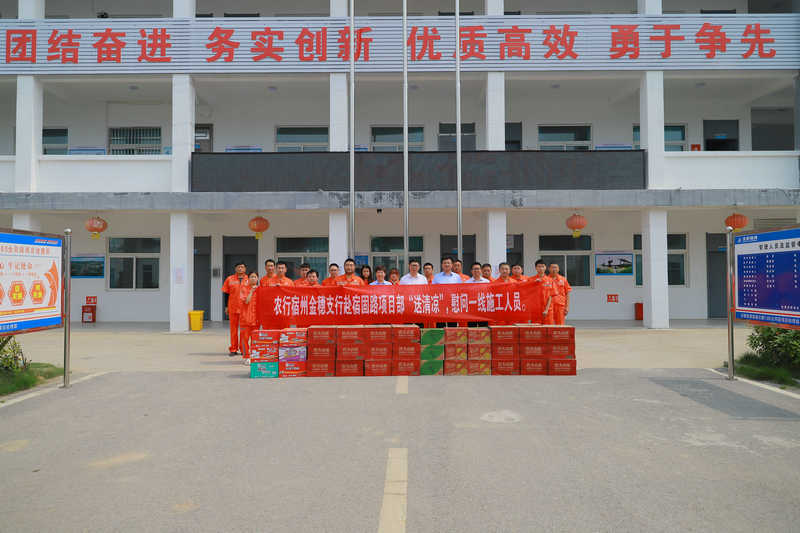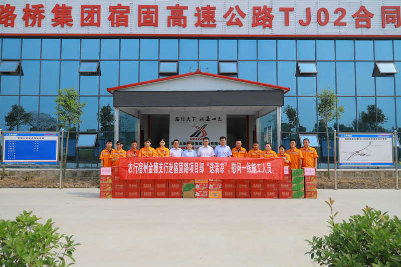 宿州訊(孫夢凱、肖霽函)連日來,宿州、固鎮(zhèn)兩地持續(xù)高溫,氣溫高達(dá)38℃。為進(jìn)一步加強(qiáng)銀企縱向交流、橫向合作,以高質(zhì)量聯(lián)建共建,贏取社會(huì)效益。8月11日,農(nóng)行宿州金穗支行行長鄧峰一行前往宿固項(xiàng)目慰問并參觀施工現(xiàn)場,為堅(jiān)守在項(xiàng)目一線工人送上夏日清涼物資,帶去誠摯的關(guān)心慰問。