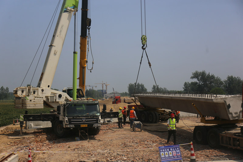 據(jù)悉,宿固高速TJ02合同段項目內(nèi)設(shè)新汴河特大橋1座、如意溝大橋1座、中小橋及跨線橋合計8座,共計需架設(shè)箱梁483片,其中20米箱梁39片,30米箱梁236片,33.2米箱梁16片,35米箱梁32片,40米箱梁16片,13米T梁144片。此次首片箱梁的成功架設(shè),拉開了項目部橋梁上部結(jié)構(gòu)施工序幕,為后續(xù)施工按下“加速鍵”。