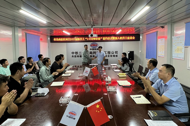 8月14日,中鐵二十一局南疆傳染病救治基地項目迎來了4名“萌新”,為了幫助他們盡快完成從“學生時代”到“初入職場”角色的轉變,項目部通過舉行“1+2導師帶徒”簽約儀式暨新入職員工座談促進新老員工的交流和共同成長。