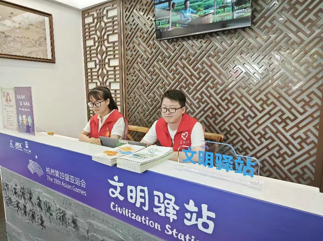 “同志,這個地鐵站在哪個方向,怎么走呀?”“同志您好,這個地鐵站您沿這條路直走,第一個路口左拐,直走再經過兩個路口,就可以看到地鐵站了。”“謝謝了,再見。”“亞運會馬上就要開始了,作為一名在杭工作的人員,我倍感榮幸。同時作為一位公民,我們也應該盡自己的一份力去助力亞運,展現當代青年的奉獻精神。”青年志愿者王夢夢說。